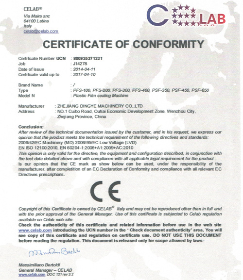 鼎業(yè)收縮機(jī)CE證書