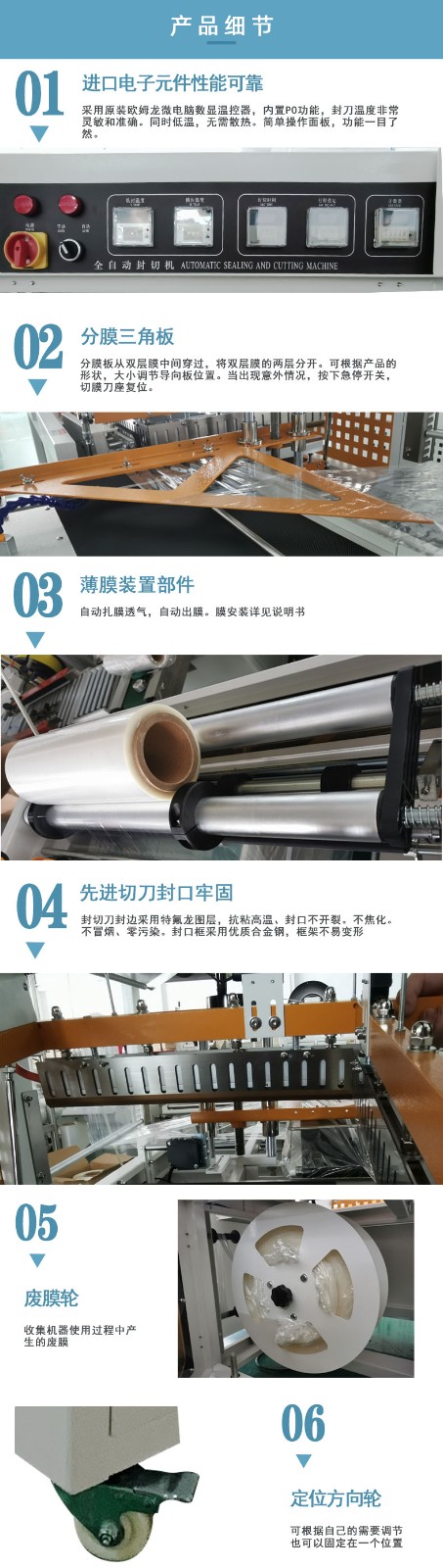 - 自動化控制:通過光電傳感器或其他感應裝置,精確檢測產(chǎn)品的位置和尺寸,自動調(diào)整封切的位置和長度,確保包裝的準確性和美觀性。