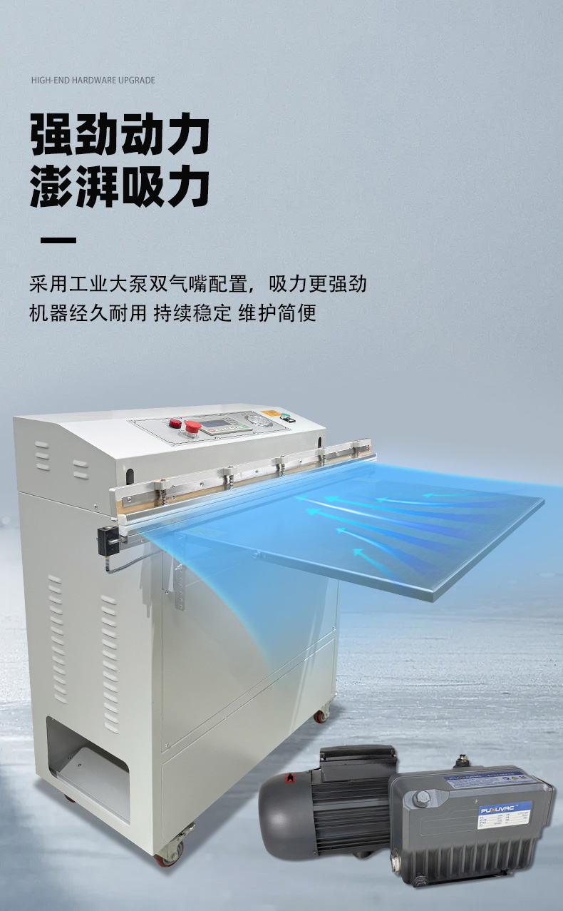 - 工業領域:可真空包裝大型機械零件(防銹)、整箱電子元件(防塵),部分機型支持調節抽真空力度,避免損壞精密組件。
