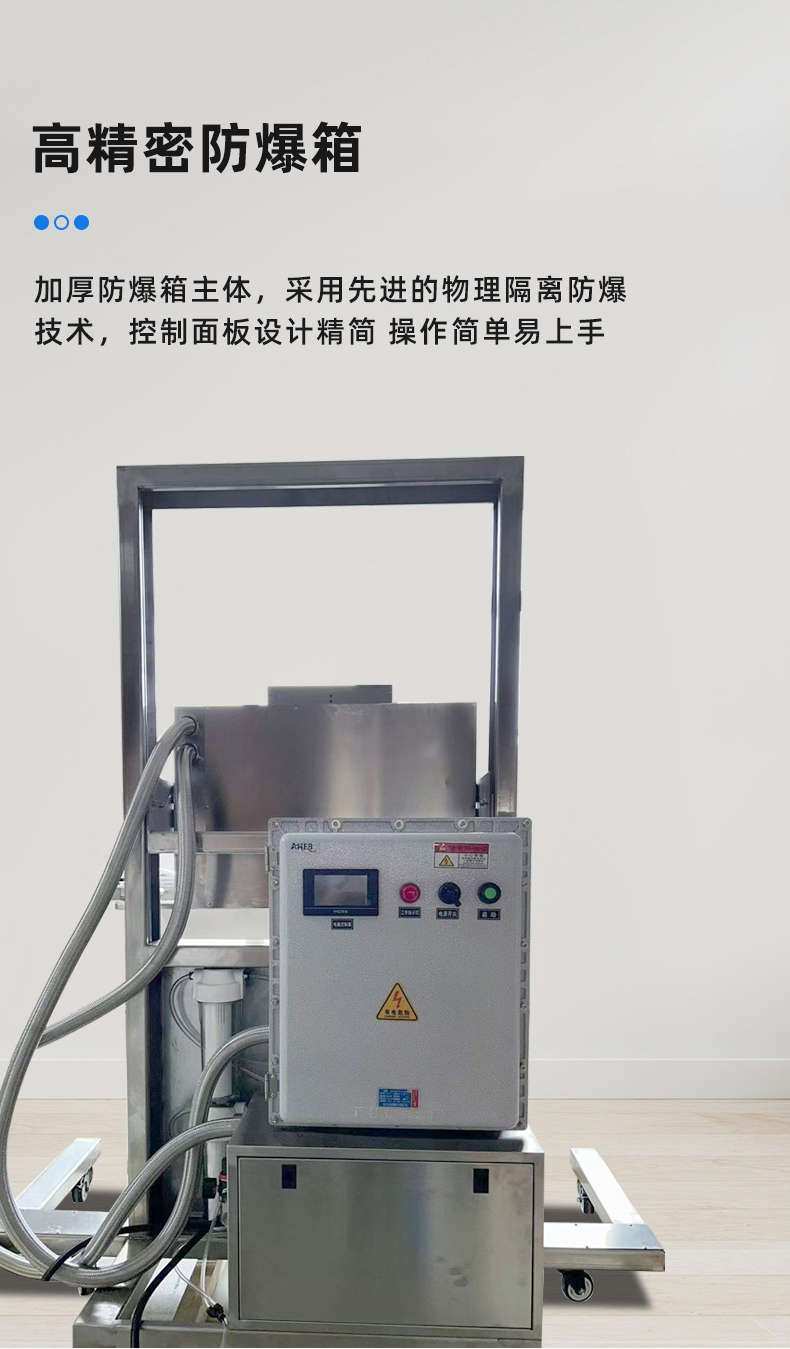- 防爆性能優越:采用物理隔離防爆技術,嚴格選用防爆達標元件,電器箱、真空泵、熱封條等都經過特殊的防爆處理,能有效防止在操作過程中產生火花,避免爆炸等危險情況的發生2。